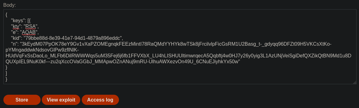 - Utilizar el exploit server de PortSwigger para almacenar la clave pública.
