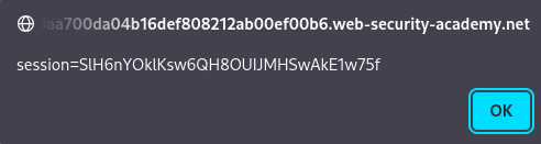 Si modificamos esta opción a false y repetimos el mismo proceso, entonces sí podemos ver cómo funciona el payload y nos aparece el pop-up con document.cookie.