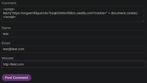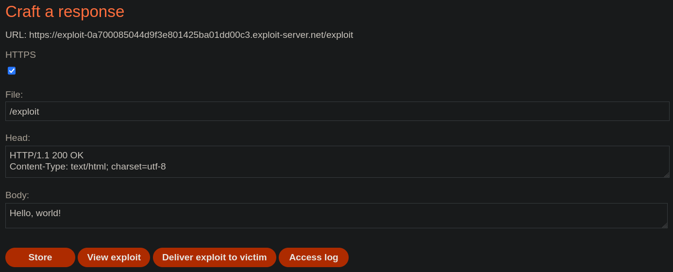 Para facilitar esto, PortSwigger nos proporciona un servidor malicioso donde podemos generar un enlace malicioso y compartirlo con la víctima, obligándola a ejecutar los comandos que deseemos.