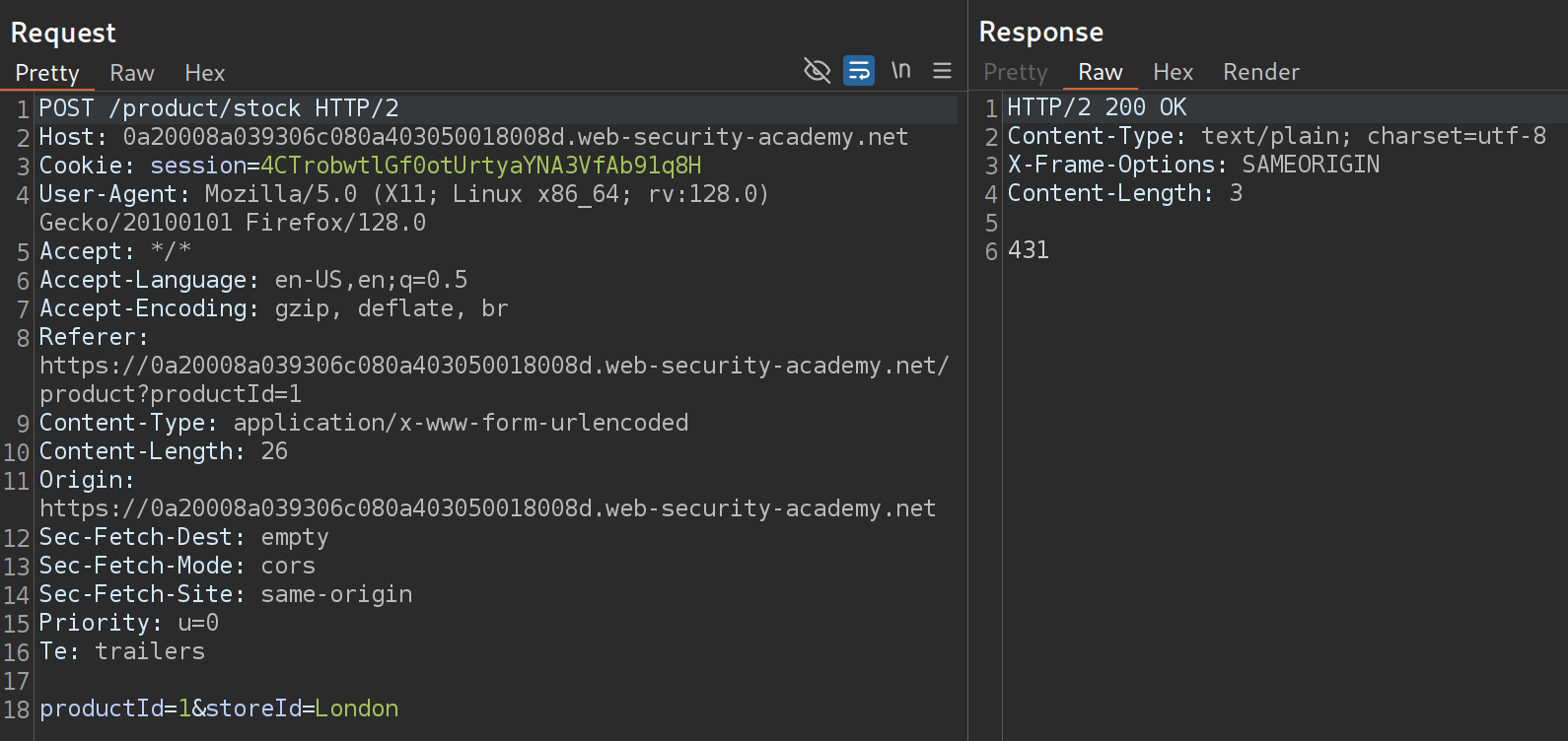 Podemos observar que hay una función que toma el valor de un parámetro storeId y lo escribe en la página.