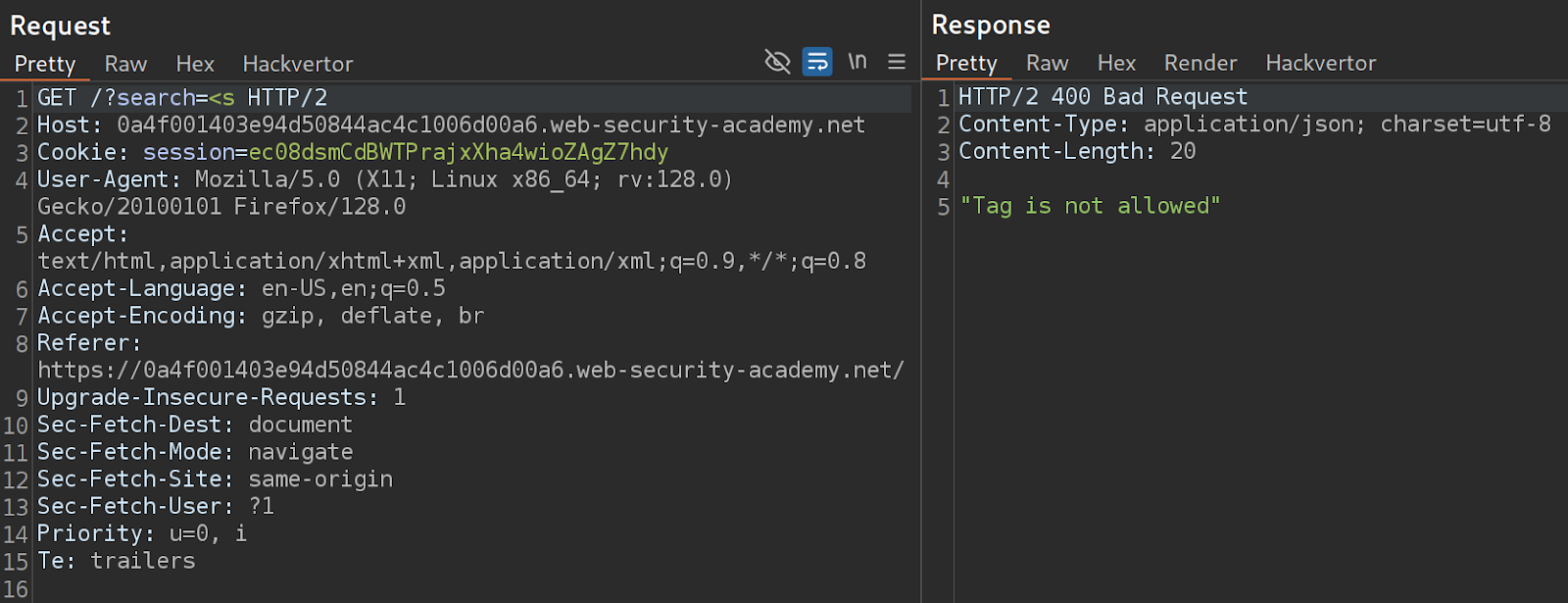 - Lab 14: Reflected XSS into HTML context with most tags and attributes blocked